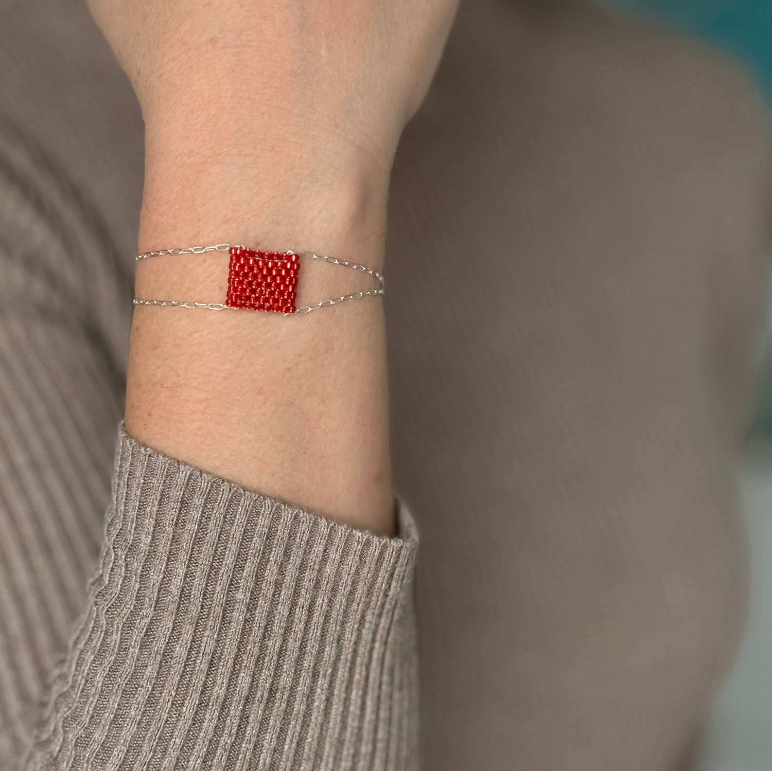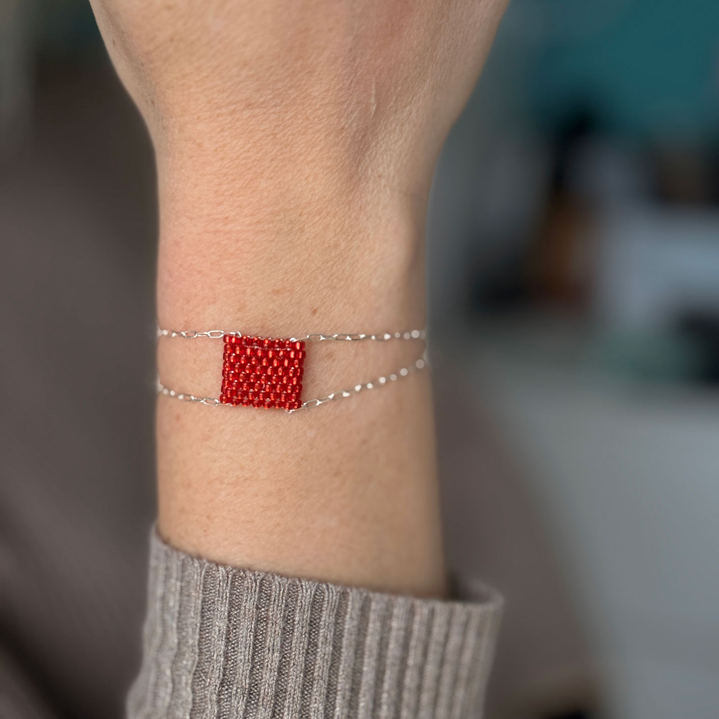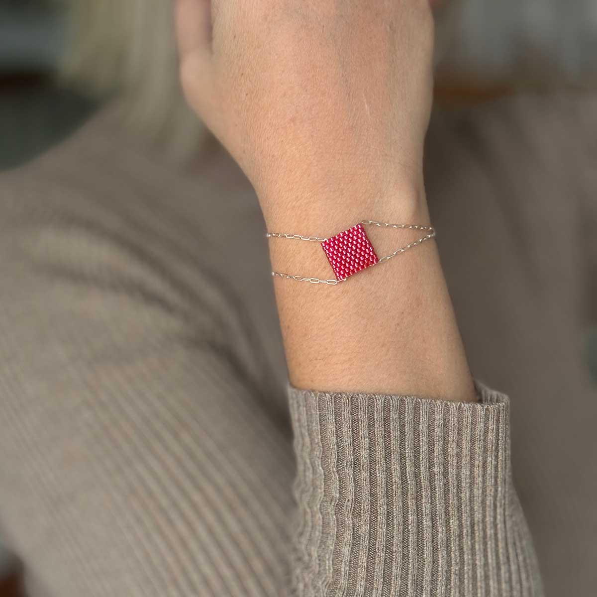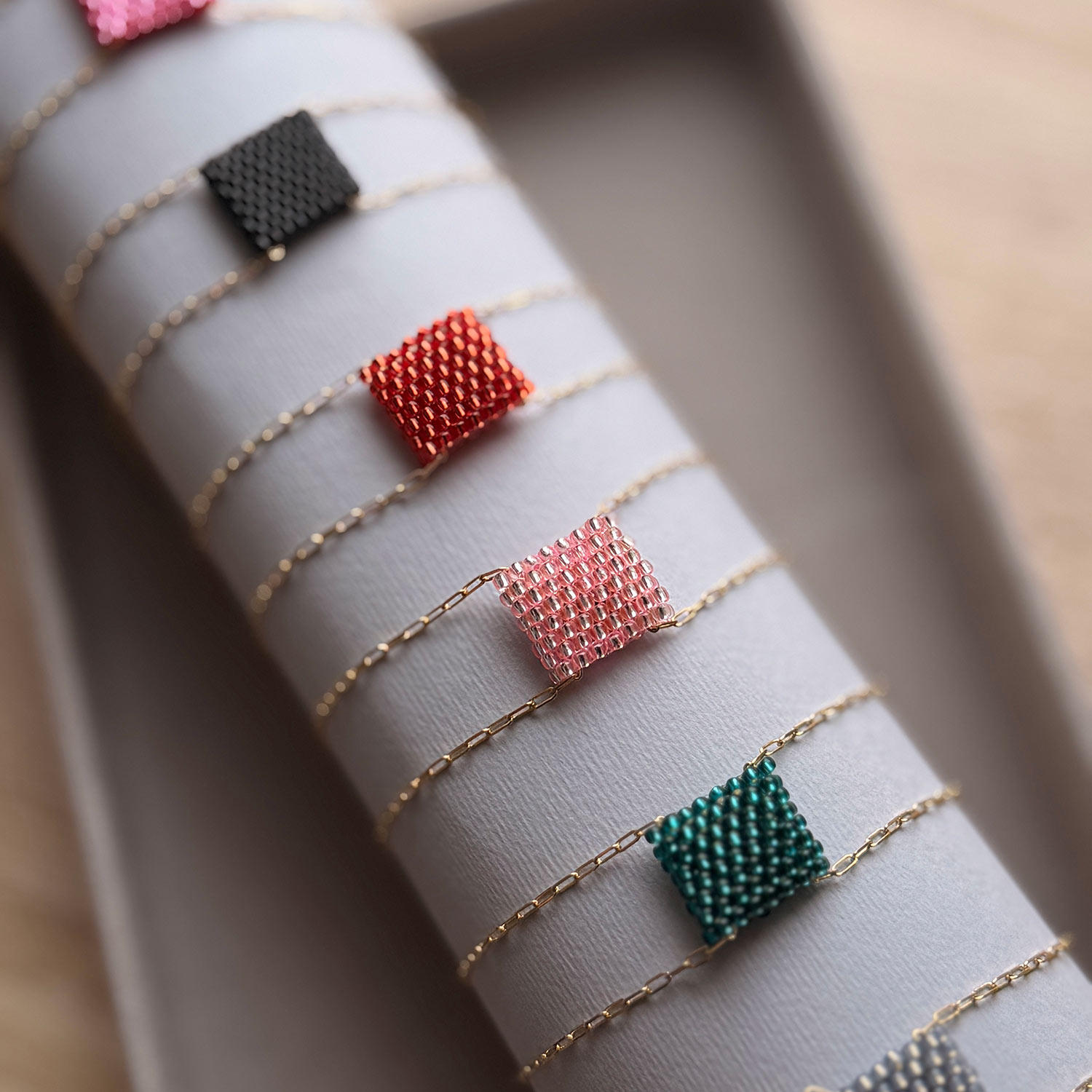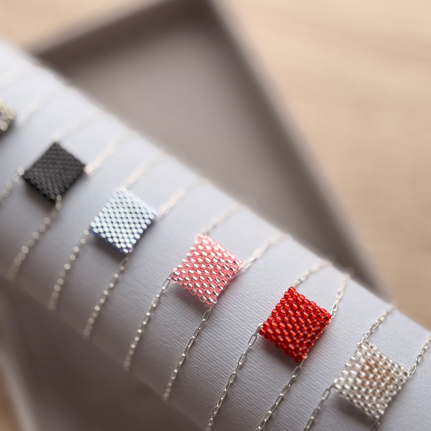 Handcrafted with Miyuki glass beads and a gold or silver plated chain. Each bracelet is assembled by hand in Estonia.